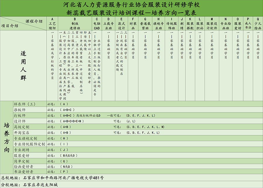 學(xué)校秉承“誠(chéng)信辦學(xué),熱情服務(wù),實(shí)力辦學(xué)”的宗旨。老師經(jīng)驗(yàn)豐富,認(rèn)真負(fù)責(zé),授課理論聯(lián)系實(shí)踐,平面與立體,原理與工廠實(shí)踐相結(jié)合,內(nèi)容新穎易學(xué),手把手教學(xué),一對(duì)一輔導(dǎo),內(nèi)容與北京上海同步,以石家莊價(jià)格學(xué)到北京上海的高端技術(shù),即不同于師傅帶徒弟的片面,又摒棄專業(yè)學(xué)校的不實(shí)用,專業(yè)特色的培訓(xùn)是中專,技校,大中專畢業(yè)生,開(kāi)店者,傳統(tǒng)裁縫,車工升級(jí)的絕好途徑,無(wú)論您在服裝業(yè)干了多少年,所有問(wèn)題將在這里一站式解決,沒(méi)基礎(chǔ)的,在這里也將一步到位,少走彎路!